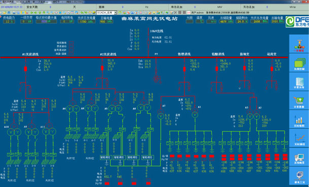 只配置光伏发电和储能系统,不配置柴油发电设备,对光伏电站的启停是一个很大的挑战;县城的总负荷远超预期,白天有光照但不充足时,铁锂储能系统需要频繁转换充放电模式;为解决这些难点,配置微网能源管理系统进行控制和调节。