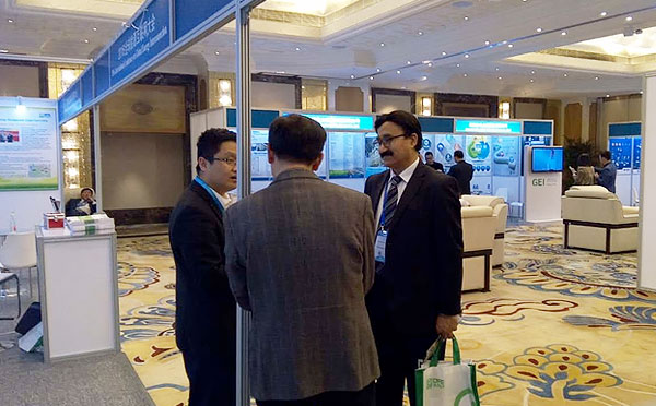 国家电网副总经理王敏(中)莅临公司展台并与公司领导合影留念 3月30日,由中国国家电网公司、联合国关注气候变化行动、国际能源署、爱迪生电气协会联合主办,中国电力企业联合会、中国电机工程学会、...