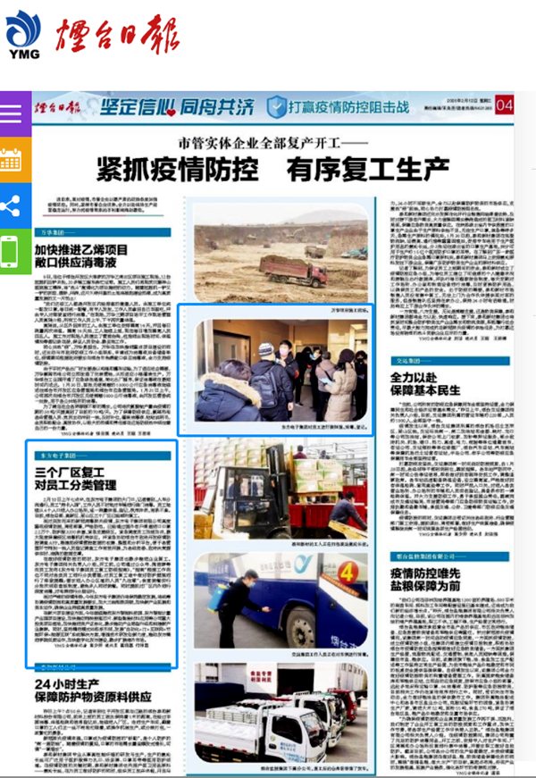 2月10日上午七点半,在威廉希尔集团的大门口,记者看到,人车分流通行,员工“持卡入园”,工作人员不时地对车辆进行侧门消毒。员工陆续从4个入口进入办公场所,逐一测量体温、登记,秩序井然,有条不紊。目前,烟台总部、高新区、莱山区三个厂区已经顺利复工。