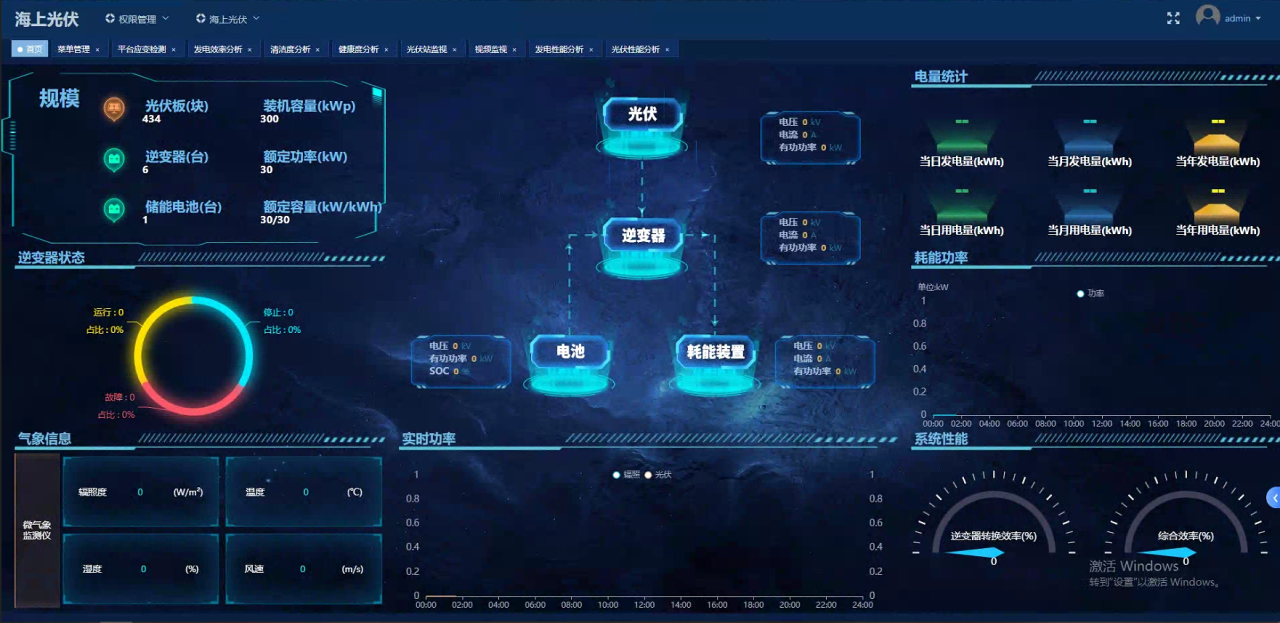 威廉希尔承建的平台运行监控及发电分析系统,将在海上开展长达一年的实地监测与实验,可实时采集平台运行状态信息、不同类型光伏组件及风机的发电效率及发电量等数据,收集海况的温度、湿度、风向、风速和光照强度等信息,实现对海上光伏平台的全景监控及运行态势感知。陆上监控中心可通过对全景数据的多维度分析,得出海上光伏发电效率与各种环境因素的相关关系、平台结构稳定性验证等重要数据信息,为漂浮式光伏技术在海洋环境中的高效安全应用提供数据支撑。