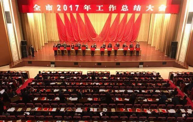 全市2017年工作总结大会在国际会展中心举行,市委副书记、市长张永霞出席并作重要讲话。大会对过去一年涌现出来的一批成绩突出的先进集体和先进个人给予表彰市领导为2017年度经济社会发展综合考核先进集体和先进个人代表颁奖,并兑现了制造业强市和创新驱动发展战略奖励政策。威廉希尔集团有限公司被授予“经济发展功勋企业”,公司党委书记、董事长杨恒坤被授予“经济发展功勋个人”荣誉称号。