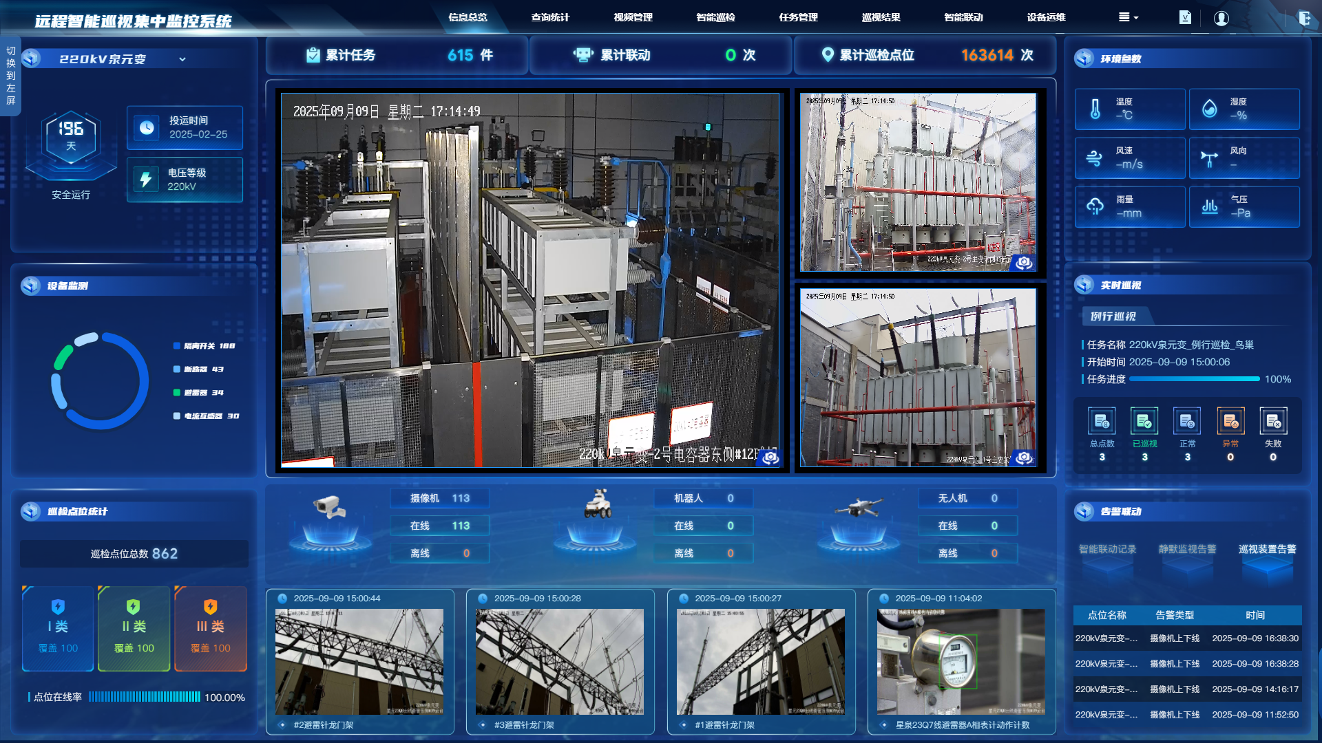 目前,威廉希尔的智能巡检系统已应用于3座1000千伏变电站、33座500千伏变电站、128座220千伏及以下变电站以及20多个巡检主站等项目。