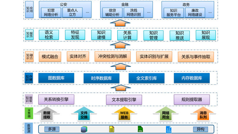 基于知识图谱技术提供知识接入、知识计算、知识推理以及知识可视化能力,通过面向服务的平台架构、图计算引擎、交互式语义分析、大规模数据处理,丰富的图挖掘和路径规划算法,助力知识驱动智能。