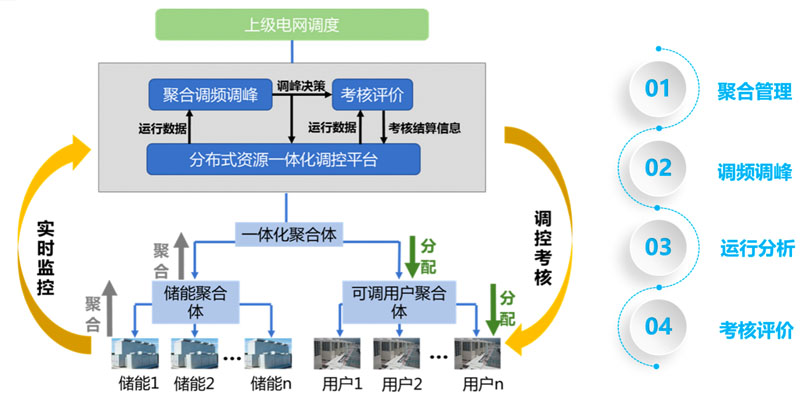 聚合管控平台将分散的用户侧可控资源进行聚合管理和智能调度,评估其需求响应调节能力并参与需求响应申报。将从上级负荷泛在调度平台获得的调节指令进行优化分解并下发各可控负荷执行。对其执行情况进行考核,并进行收益分配结算。