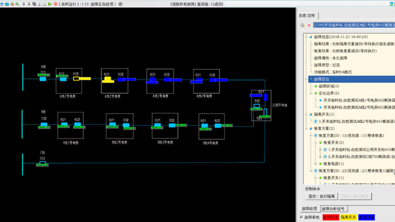 配电故障自愈软件根据配网模型拓扑关系、配网遥测状态、开关跳闸信息及保护等信号,对设备的故障情况进行综合判断,并能考虑主站集中模式、主站就地融合模式等不同模式,给出最终故障隔离及复电策略,能极大的缩短故障处理时间,保障供电可靠性。